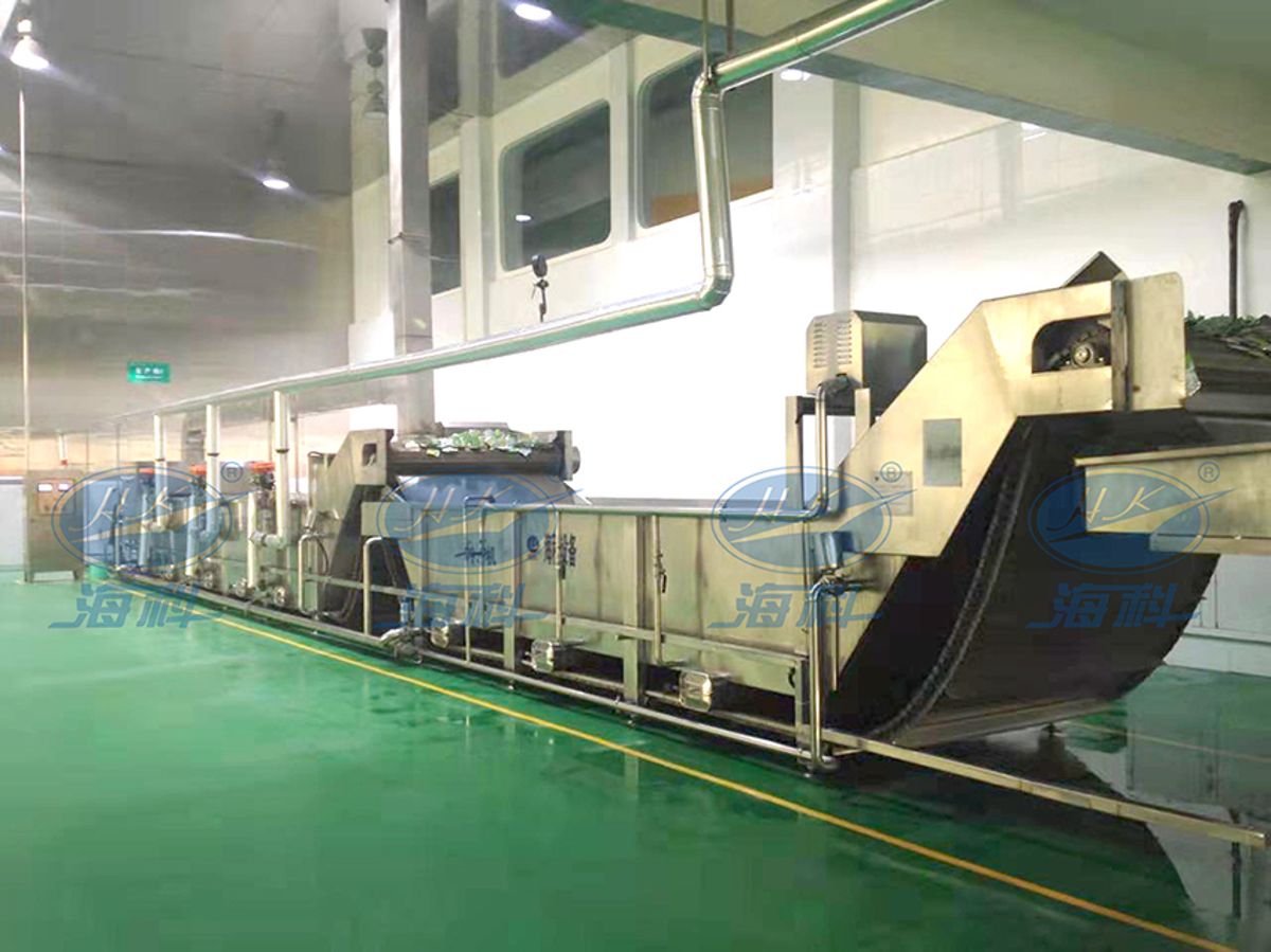 在食品、饮料、制药等行业中,要求对一些包装完毕的产品进行水浴式灭菌,被包装好的产品放在可调速的不锈钢网带上,在传递带的作用下按顺序进入灭菌箱体内,经由“高温水为介质”杀菌后,再由传送带带入箱体均匀冷却,从而达到产品杀菌要求。杀菌、冷却机连续运转,已灭菌的包装产品被源源不断送入下一生产线。